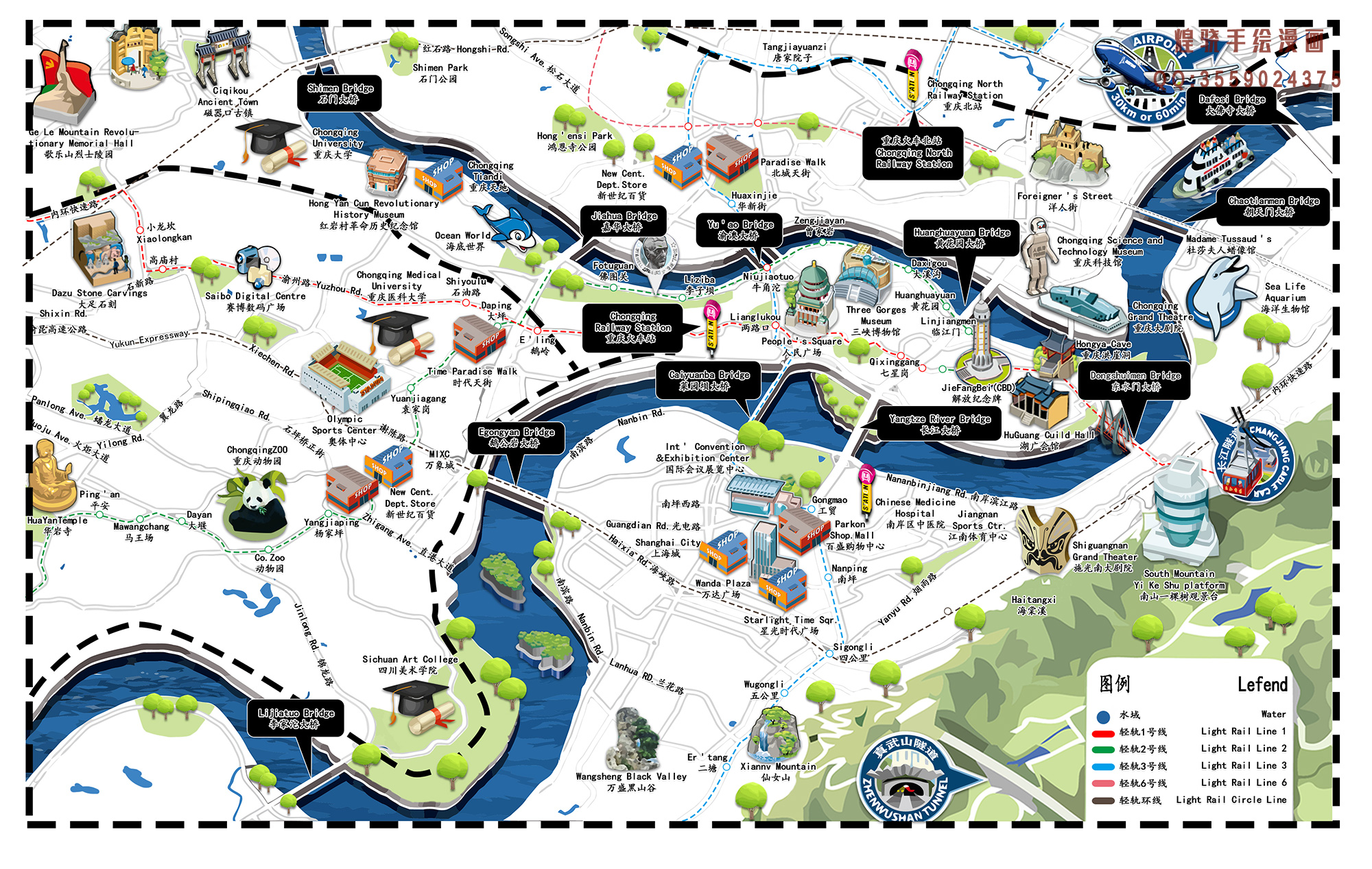 长江索道:乘坐长江索道,可以俯瞰整个重庆市区,感受山城的壮丽景色。